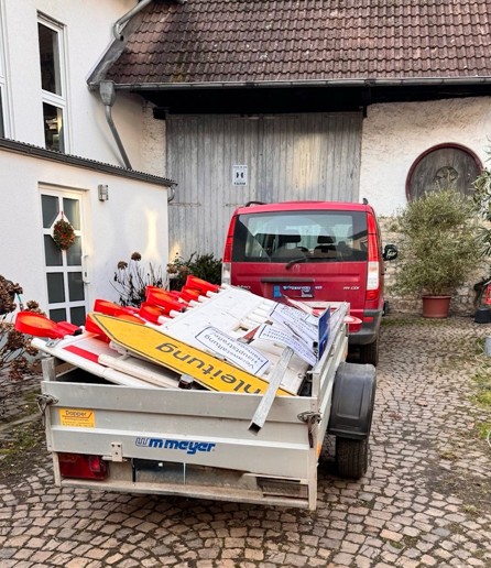 Der Aufbau der schweren Absperrungen für die maximal einstündige Sperrung wurde von den Teilnehmenden in Eigenregie übernommen, ohne Unterstützung durch die Gemeinde.