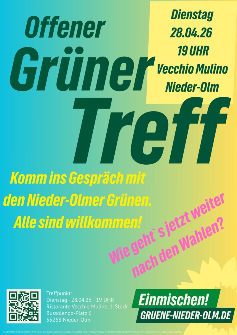wir laden euch herzlich für den Kommenden Dienstag, 28.4.26, zum offenen Grünen Treff ein,