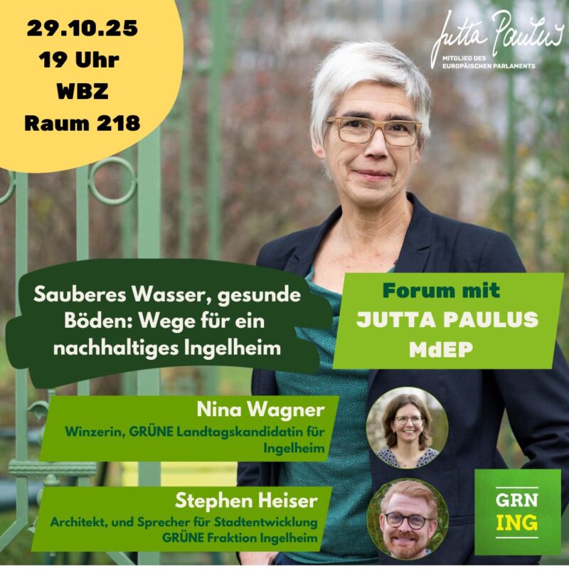 GRÜNE Ingelheim laden am 29. Oktober ins WBZ zum Forum mit Jutta Paulus MdEP, Nina Wagner und Stephen Heiser ein